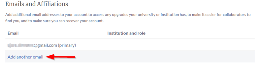 - Klik op ‘Add Another email’ onder e-mailadressen en affiliaties.