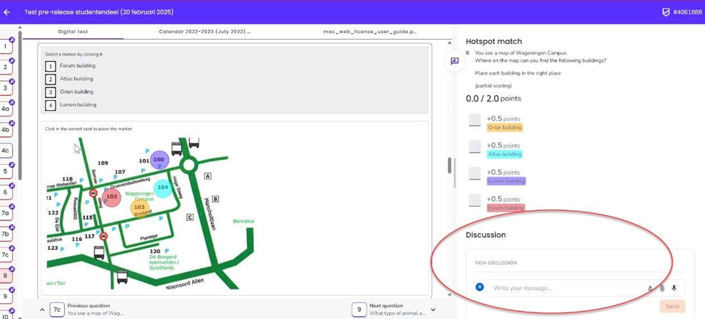 - Waar kan de student een discussie starten. Als een student een vraag wil stellen aan de docent, kan dat onder het modelantwoord aan de rechterkant van het scherm, zie afbeelding:
