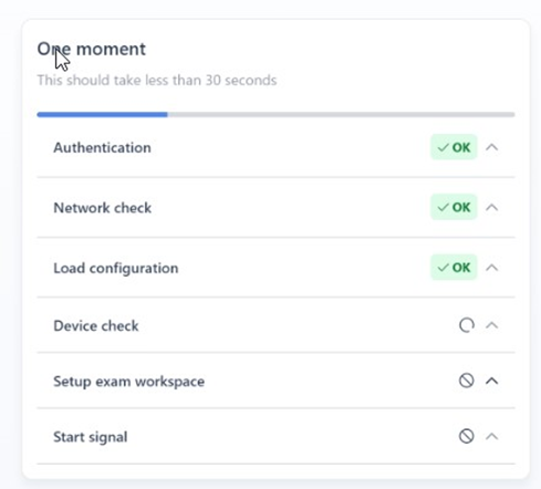 Studenten die op een Windows laptop werken, worden automatisch uitgelogd uit Windows. Wanneer de student weer inlogt in Windows opent de beveiligde Schoolyear omgeving. Bij het inloggen blijft het scherm soms een paar seconden zwart, alvorens onderstaande check pagina wordt getoond.