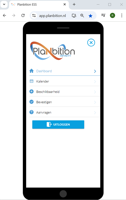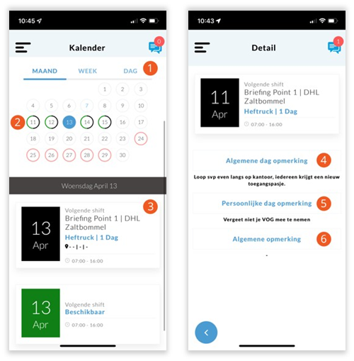 - Kalender – hier kan u uw hele rooster bekijken: geplande diensten, verlof en (on)beschikbaarheid.