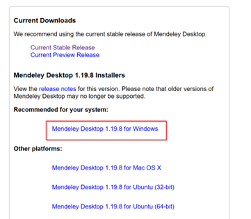 Download the latest version of Mendeley Desktop and install it. For Windows, this will be Mendeley Desktop 1.19.8.