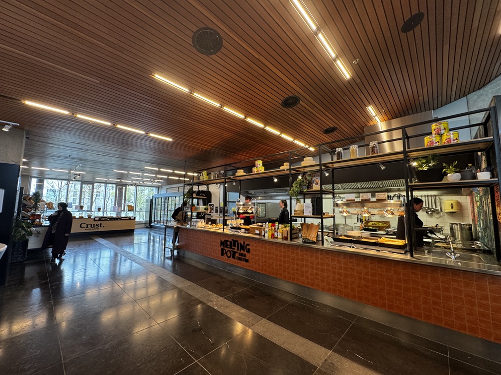 In het zelfbedieningsrestaurant in Forum kun je terecht voor een breed aanbod rond de lunch en de vroege middag. Het aanbod bestaat onder meer uit verse broodjes, wraps, panini’s, soep, salades, snacks en warme maaltijden. Er is keuze uit vegetarische, niet-vegetarische en plant-based producten, en ook glutenvrije broodjes zijn beschikbaar. Het aanbod wordt aangevuld met een to-go-assortiment, zoals pastries, smoothies, fruit, repen en diverse dranken en (plantaardige) zuivelproducten. Specials zoals poké bowls en fruitsalade maken deel uit van het aanbod. In de zomermaanden zijn ook ijsjes verkrijgbaar.